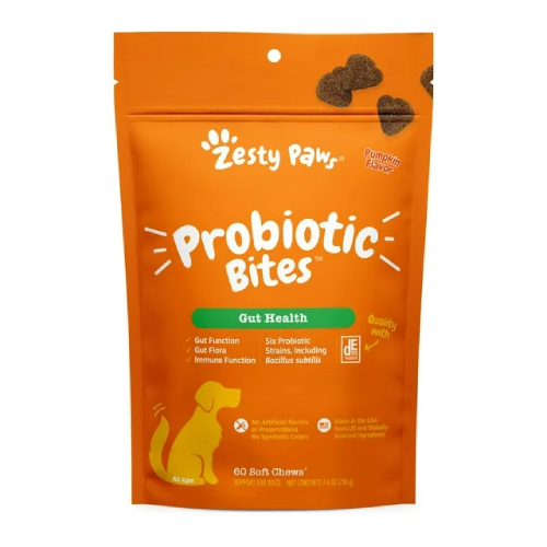 Zesty Paws Probiotic Bites for dogs are delicious and healthy treats that support the health of your four-legged friend’s digestive system. Each bite contains a powerful combination of probiotics that contribute to the balancing of the intestinal microflora, improve the absorption of nutrients and strengthen the immune system. This delicacy is made from natural ingredients, without artificial additives, which makes them safe and useful for daily consumption. Thanks to the attractive taste, your dog will not only get the necessary nutrients, but also enjoy every bite. Give your pet health and joy with Zesty Paws Probiotic Bites!
